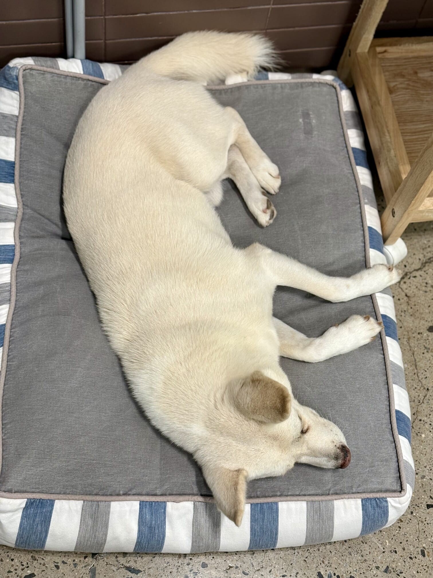 In einem kleinen Dorf hielt ein Mann Baekdoll an ganz kurzer Leine angebunden. Der Besitzer erlitt einen Schlaganfall und versorgte den Hund nicht mehr . Gute Menschen sahen diesen Umstand und meldeten ihn, so konnte Baekdoll gefunden werden und er kam in das Tierheim. Dort wurde er medizinisch versorgt und aufgepäppelt. Er liebt alle Menschen und geht auch auf fremde Menschen zu. In seiner koreanischen Pflegestelle , wo er jetzt lebt, darf er mit im Bett schlafen, was er sehr liebt. Baekdoll streitet nie mit anderen Hunden sondern spielt nur sehr schön mit ihnen. Katzen kennt er nicht, aber wir können uns vorstellen, dass er auch mit Katzen gut auskommt, da er nie aggressiv reagiert. Er ist durch und durch lieb und freundlich.